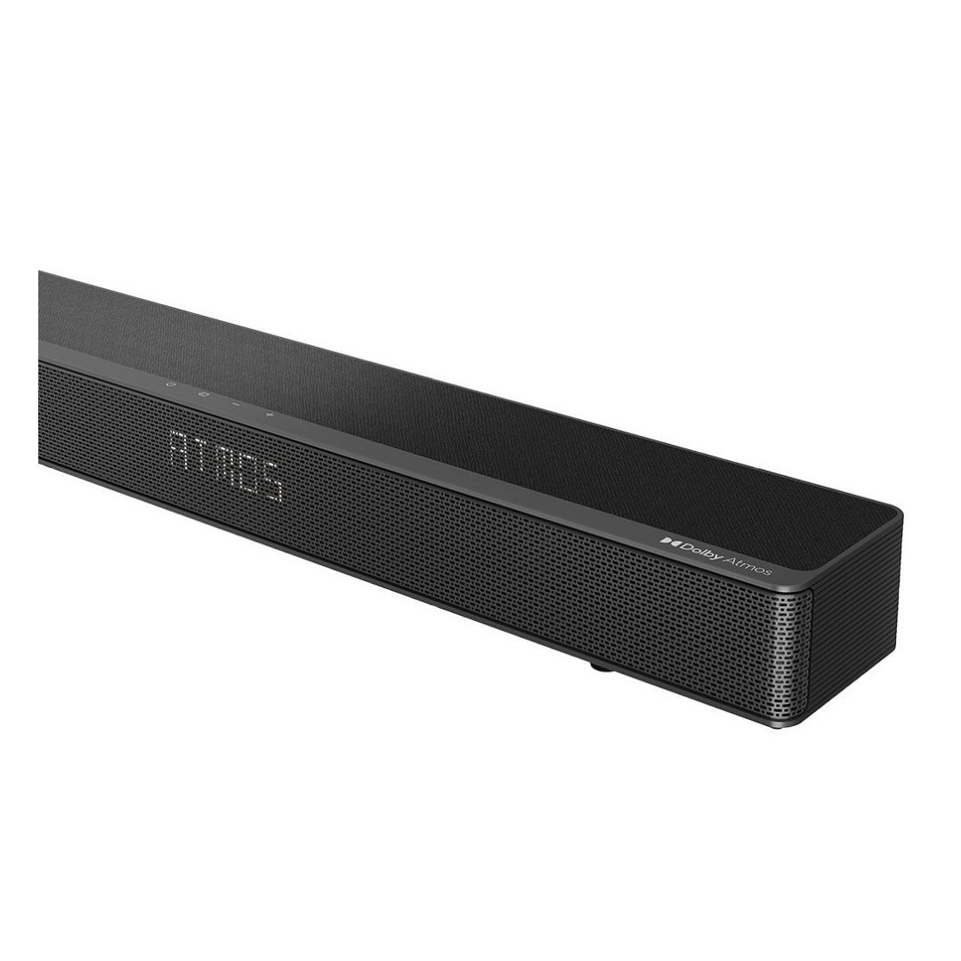 Upgrade your audio experience with the AX3120G 3.1.2 channel soundbar and wireless subwoofer. The AX3120G’s 360 watts of sound fills the room with a 7-speaker array that also projects sound overhead, making the most of Dolby Atmos, creating an immersive, surround sound experience.